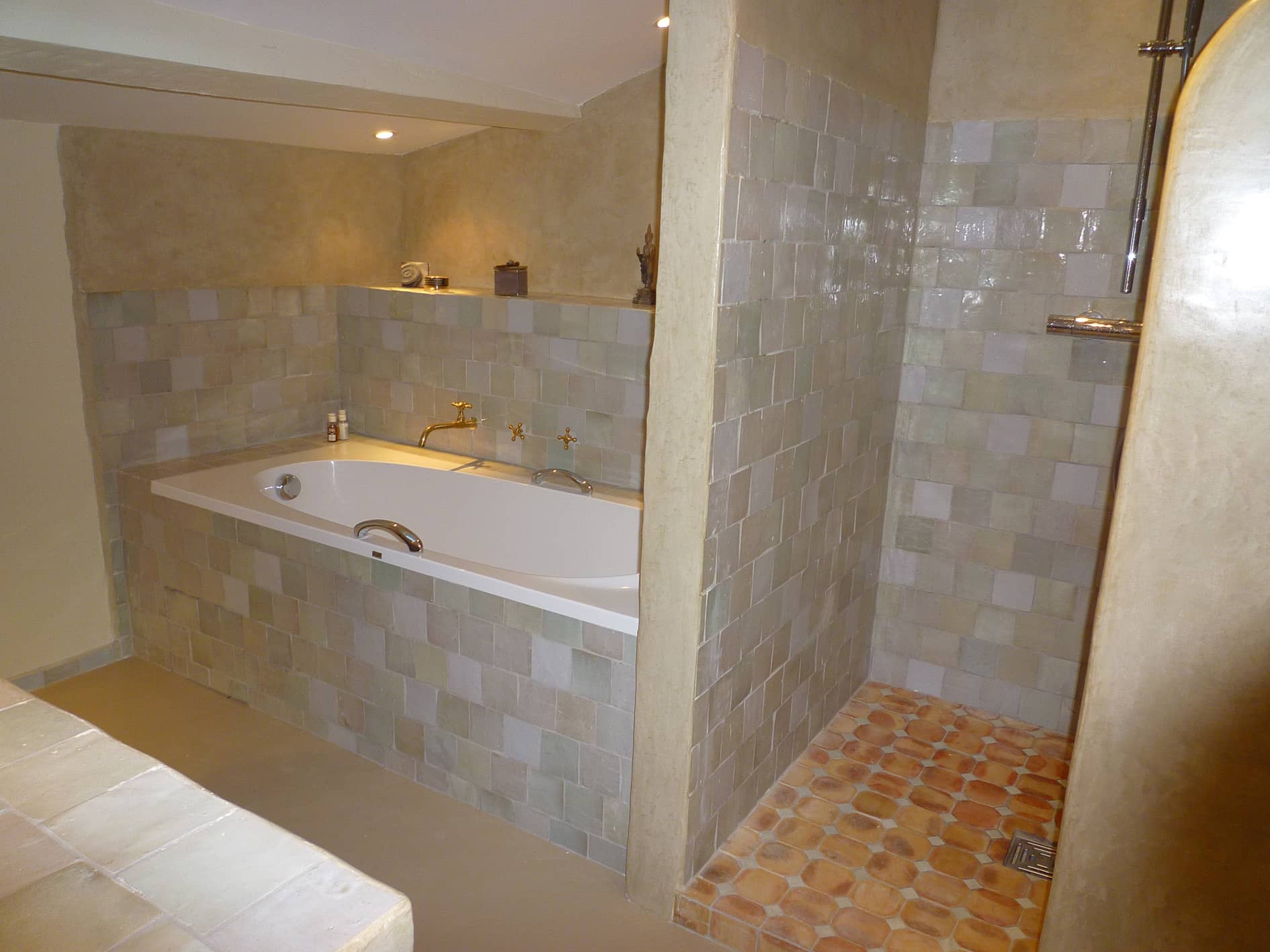 La magie du zellige marocain opère aussi dans la salle de bain. Qu’il s’agisse de créer une ambiance spa apaisante ou un écrin plus luxueux, ce carrelage marocain s’adapte à toutes les envies.
